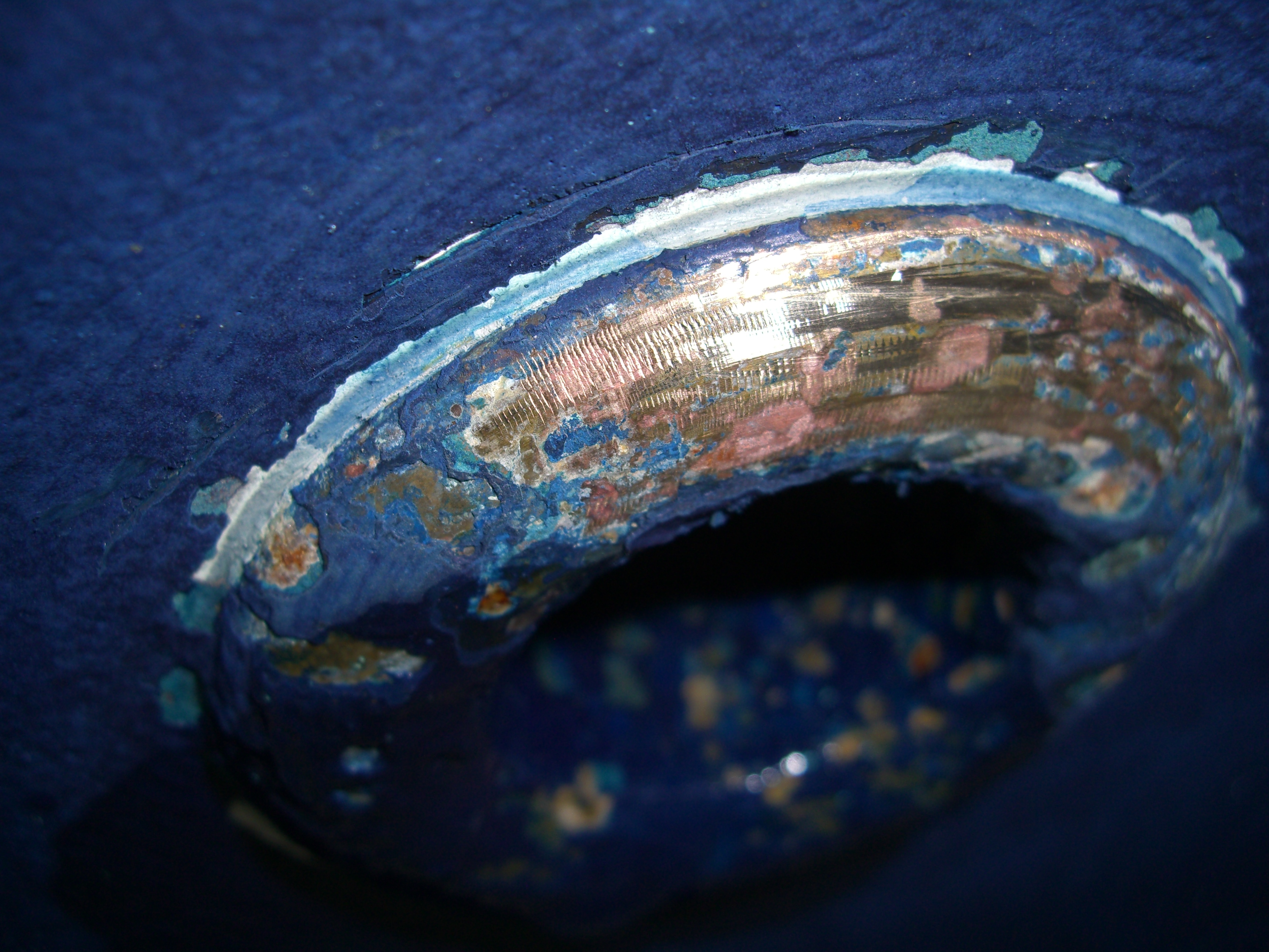 This sports cruiser was a 1996 version found with some minor damage. But the skin fittings found with dezincification, topside plastic skin fitting with tube attached which susceptible to damage when coming alongside.